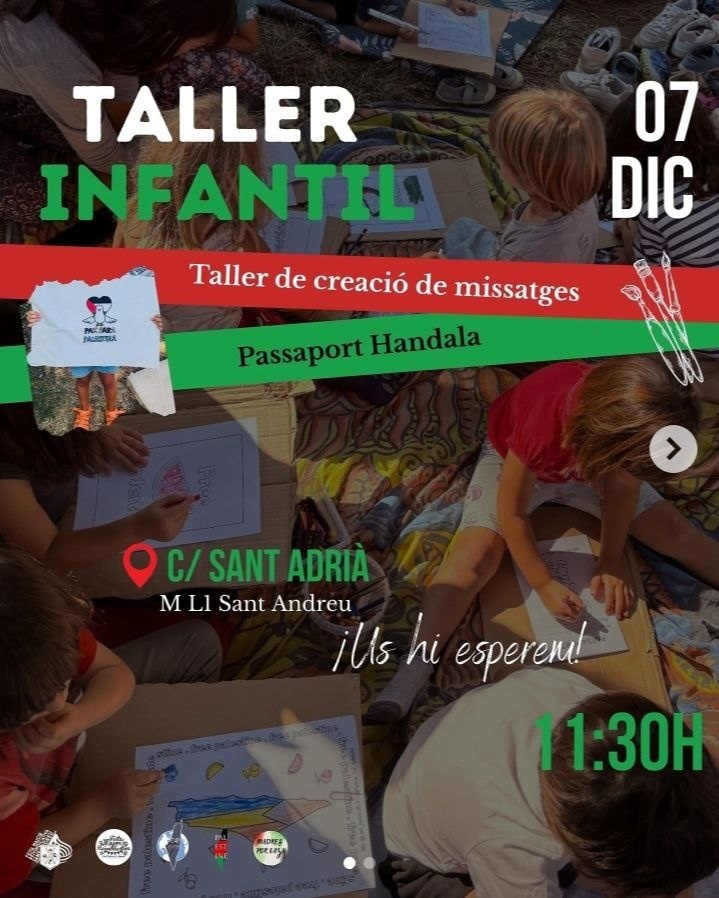Aquest diumenge 7 de desembre a les 11:30h, estarem fent tallers per als infants amb @c4palestine col•laborant per la solidaritat amb Palestina.