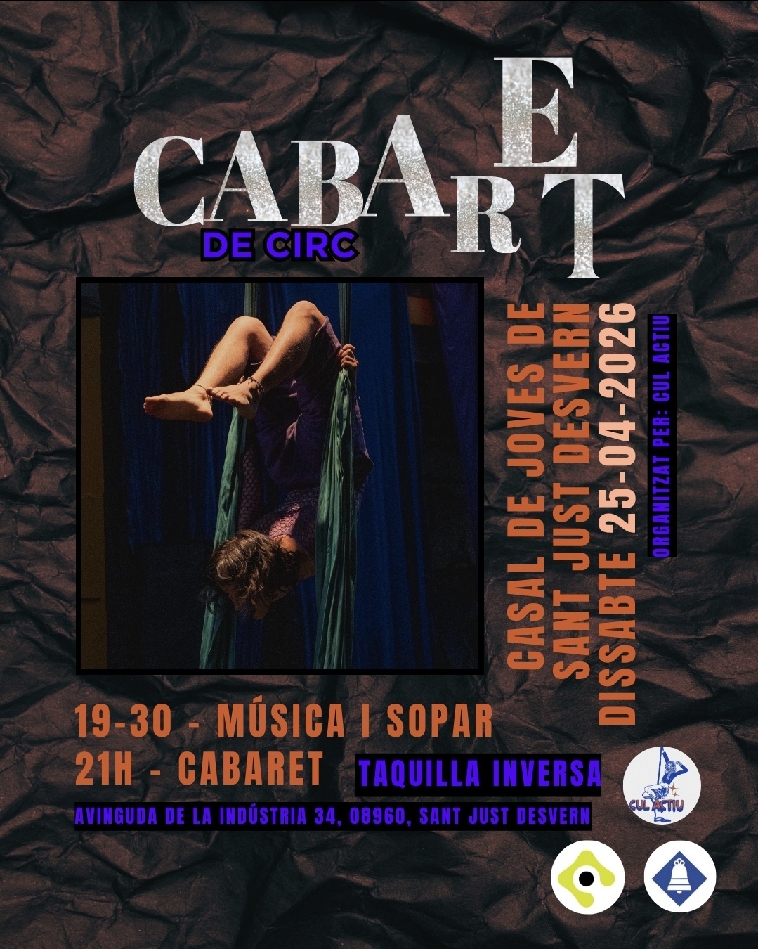 El *dissabte 25 d'abril* fem un *CABARET* de circ al Casal de Joves de Sant Just Desvern!