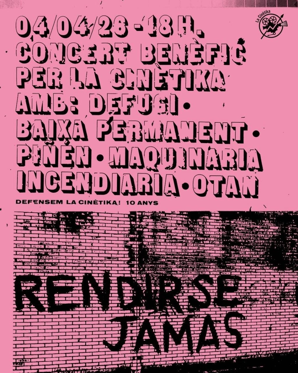 Concert benèfic per La Cinètika: OTAN, Defugi, Baixa Permanent, Piñén i Maquinaria Incendiaria