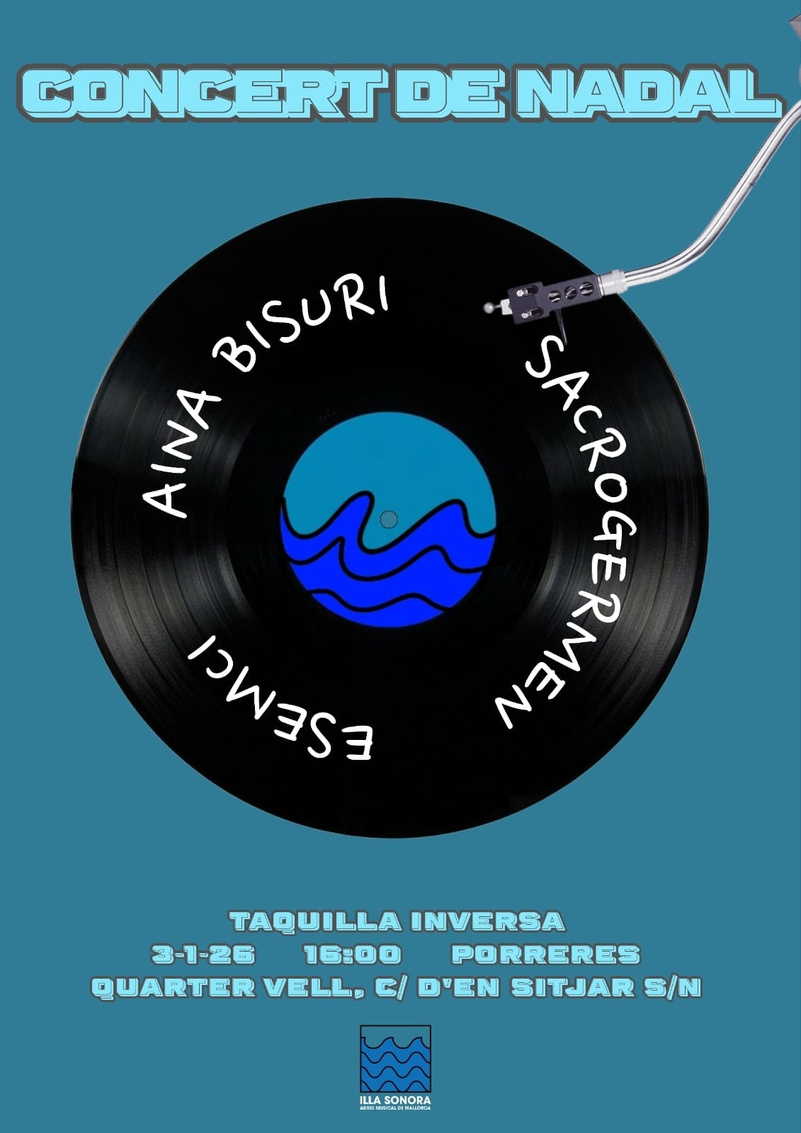 Concert de Nadal organitzat per l'arxiu musical d'Illa Sonora amb artistes de sa contrada: Aina Bisuri, Sacrogermen i s'Esemci.