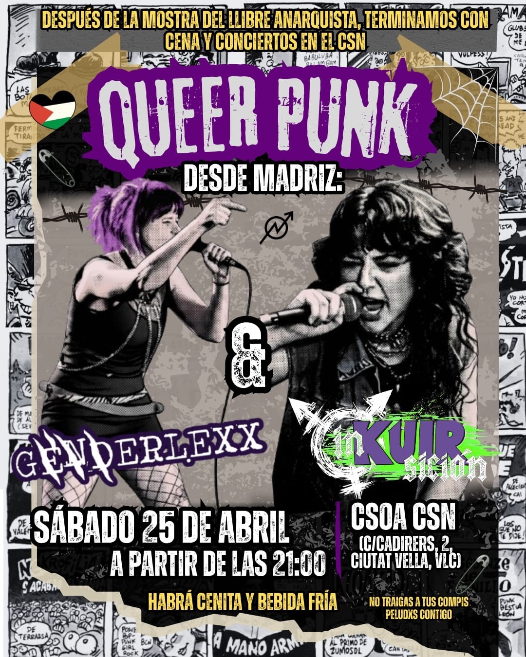 Concert punk transfeminista! Inkuirsición i Genderlexx!! Després de passar el dia a la Mostra hi haurà sopar al CSN i acabarem amb els concerts. On? Al nostre lloc favorit (Carrer dels Cadirers, 2) No podeu faltar!!