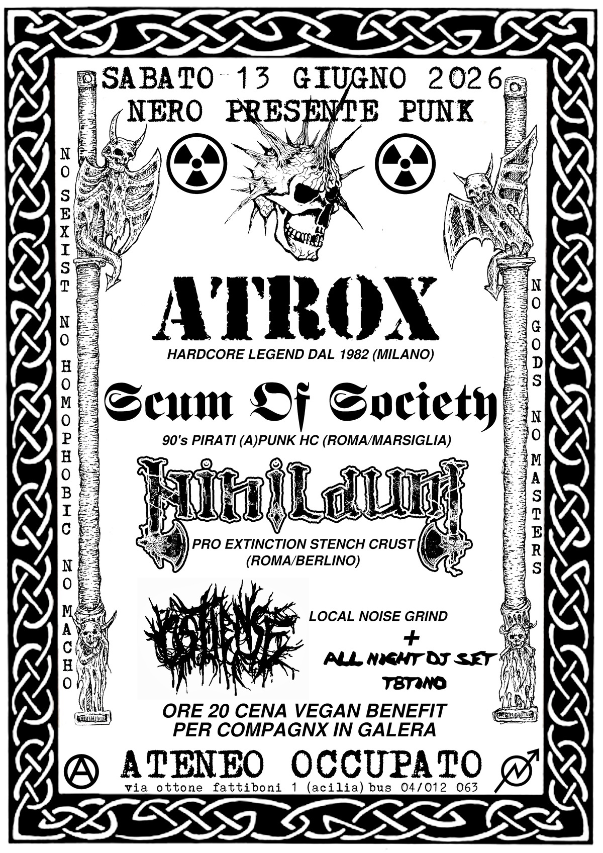 Cena vegan benefit per compagnx in galera, a seguire live set con Atrox (Milano) Scum of Society, Nihildum, Ostiense