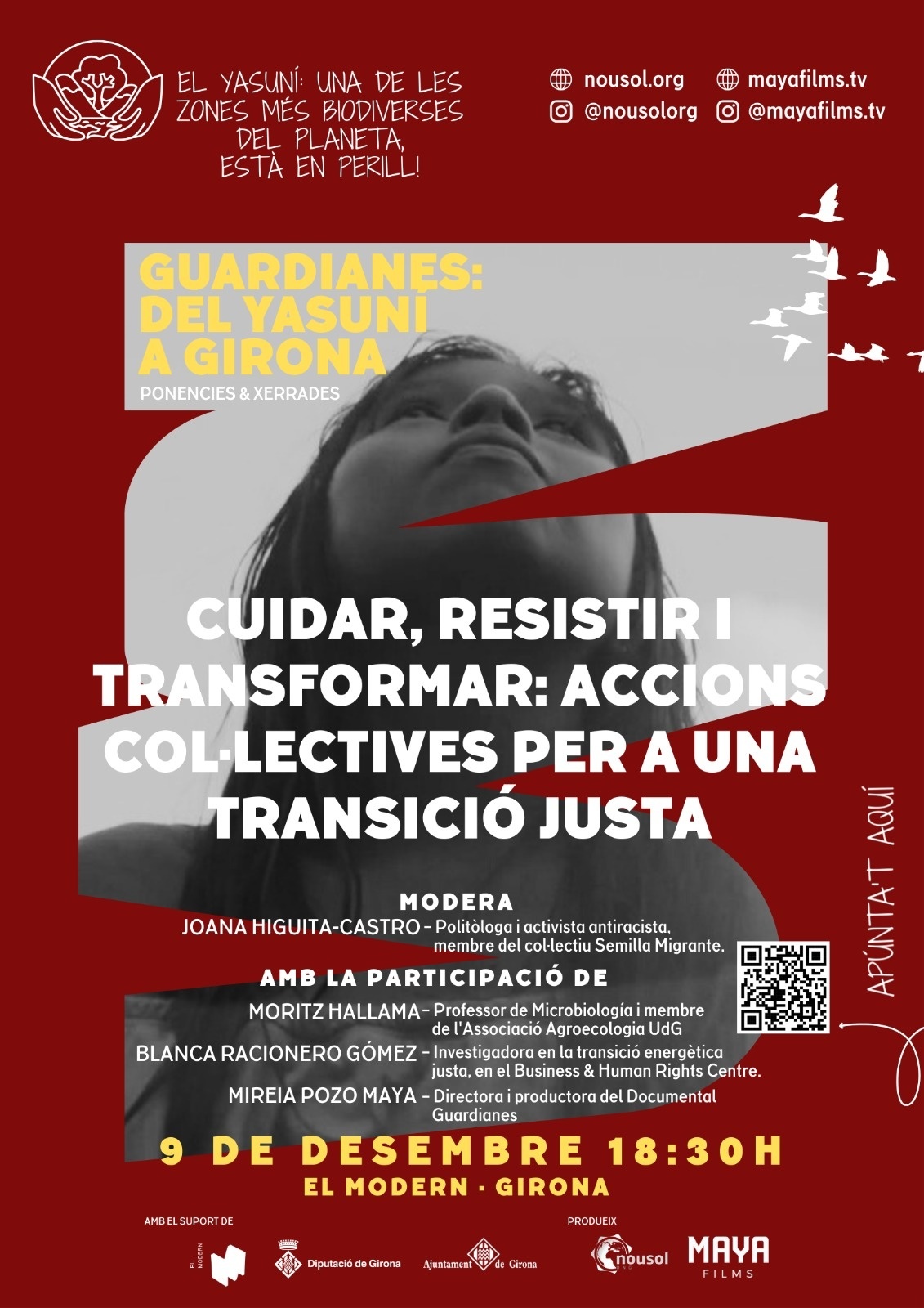 Sota el paraigua del documental Guardianes produït per Maya Films TV i impulsada pel projecte d’educació per a la justícia global, “Del Yasuní a Girona", aquesta segona ponència vol anar un pas més enllà: posar el cos, la veu i la intenció en allò que significa defensar la vida en temps d’emergència climàtica.