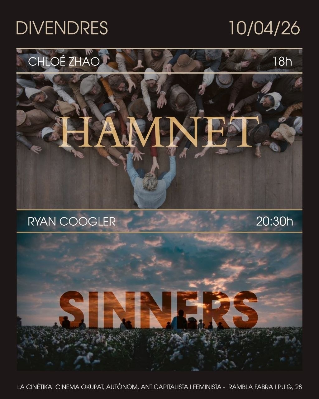 https://bcn.convoca.la/event/doble-projeccio-especial-aniversari-hamnet-sinners32, Rambla de Fabra i Puig, Sant Andreu, Barcelona, 08030