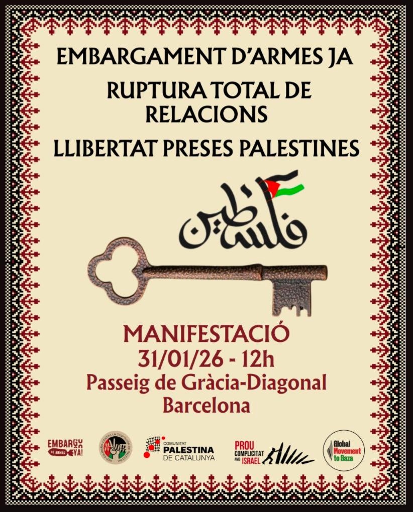 https://bcn.convoca.la/event/el-31-de-gener-tornem-a-omplir-els-carrers-per-una-palestina-lliureavinguda Diagonal amb passeig de Gràcia, Barcelona