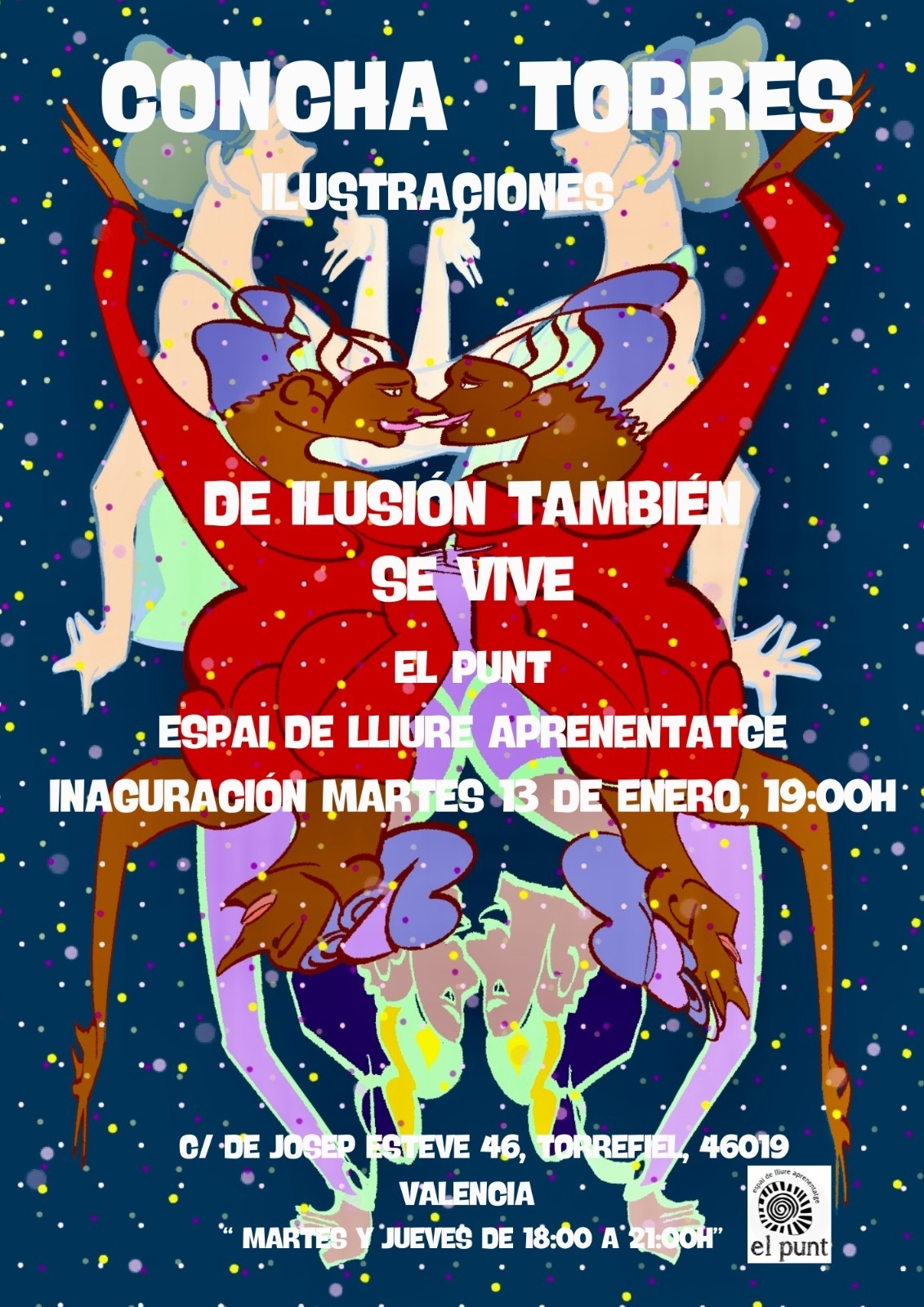 https://calendari.cc/event/inauguracio-de-lexposicio-de-ilusion-tambien-se-vive-de-concha-torresC/ de Josep Esteve 46, Torrefiel, 46019 València