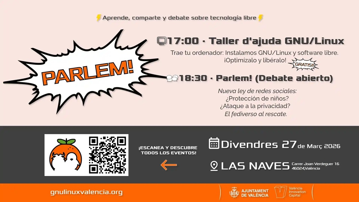 Aquest divendres 27 de març t’esperem a Les Naves per a una nova vesprada plena de comunitat, aprenentatge i debat. Porta els teus dubtes i les teues ganes de compartir.