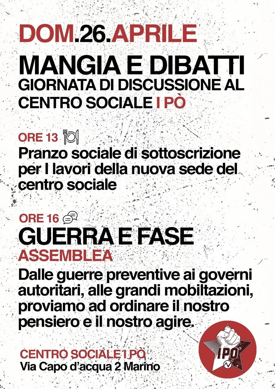 Mangia e Dibatti https://csoaipo.noblogs.org/2026/04/23/mangia-e-dibatti-26-04/