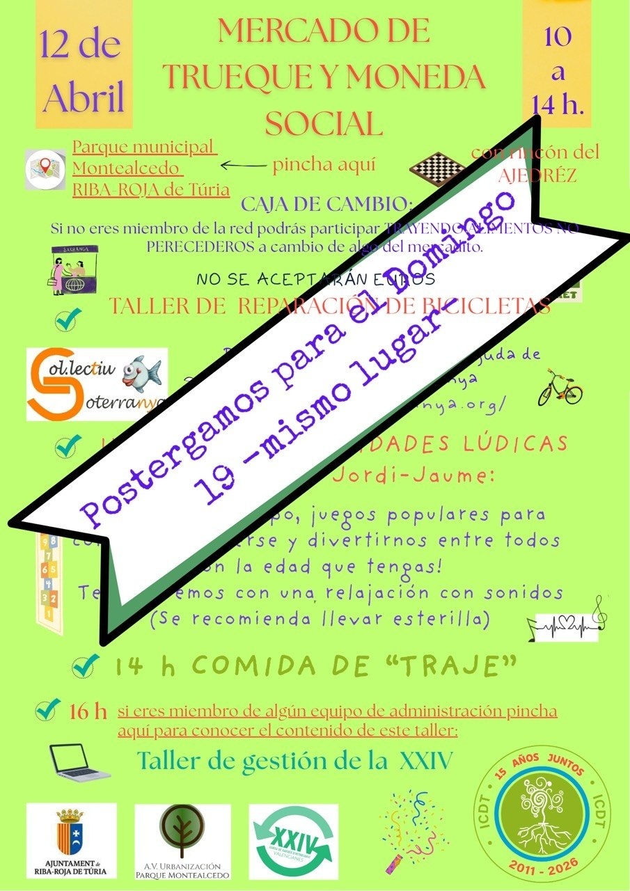 https://calendari.cc/event/mercado-de-trueque-intercambio-y-moneda-social-3C. José Iturbi, 51, 46190 Riba-roja de Túria, Valencia