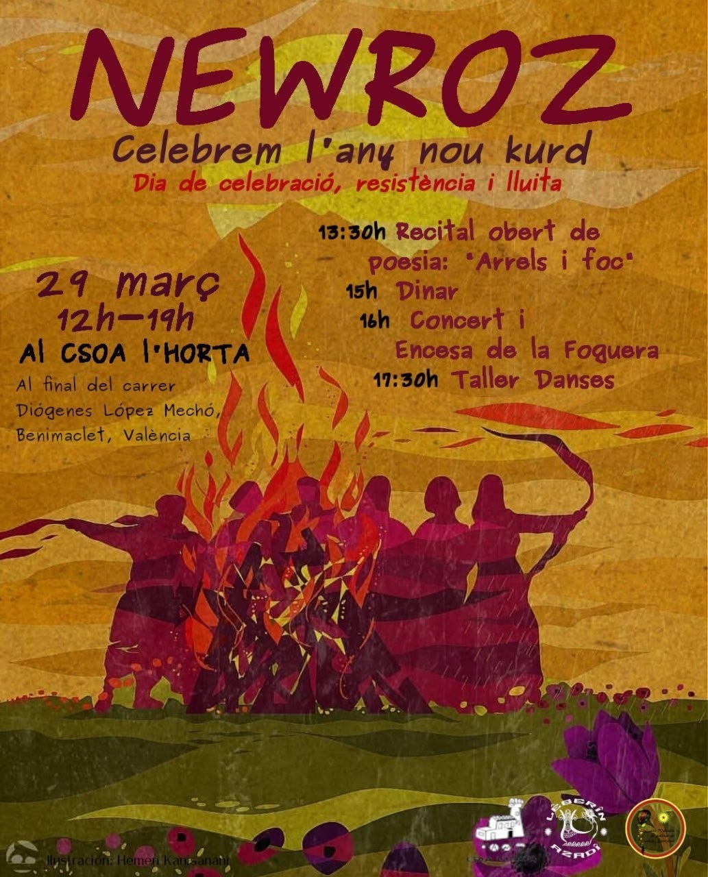 Celebrem el Nou Any Kurd a València i l'inici de la primavera en una jornada de convivència amb la comunitat kurda. Ens trobarem entre poesia, danses tradicionals, música i menjar, a la calor del foc.