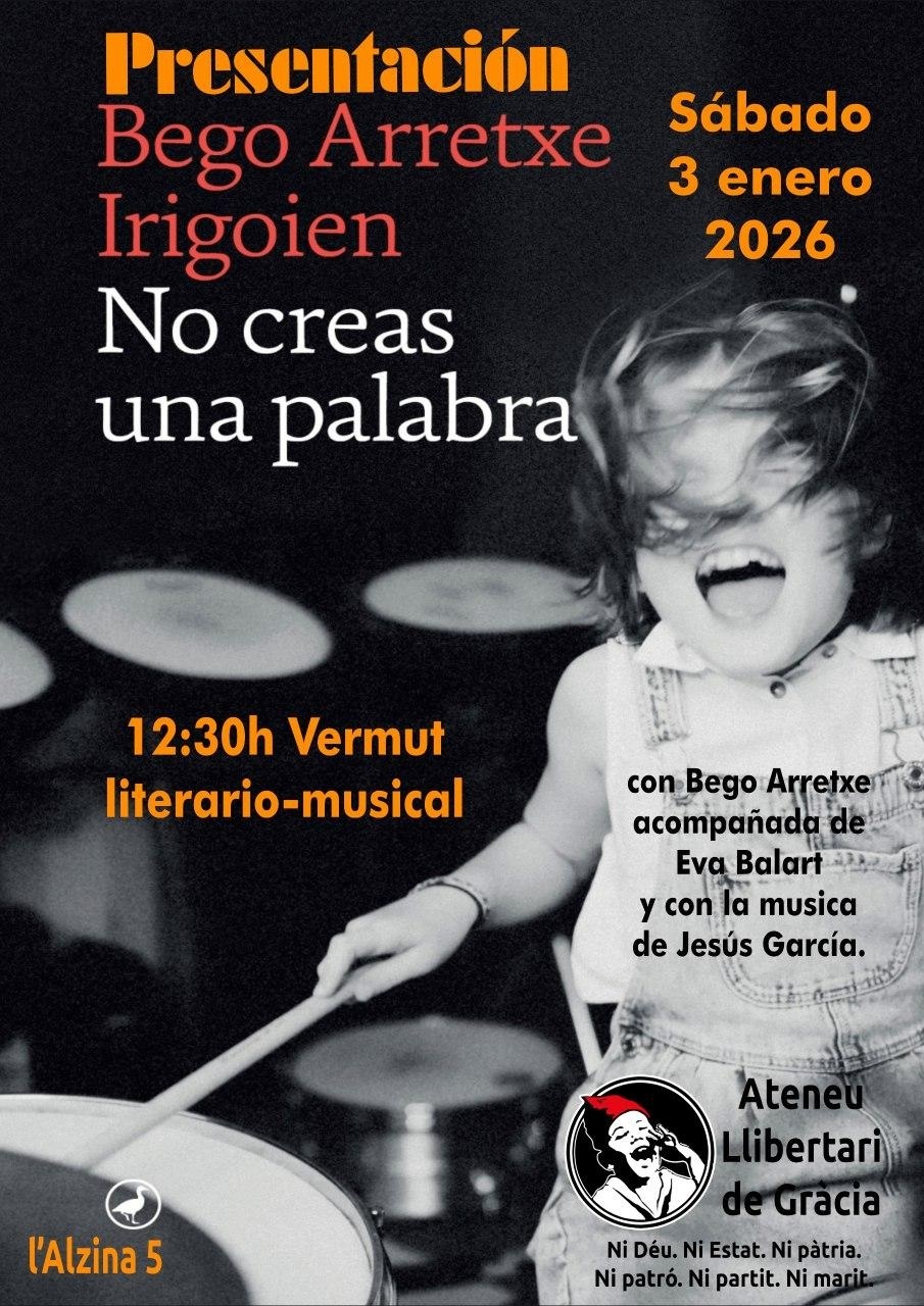 https://bcn.convoca.la/event/presentacio-del-llibre-nocreas-una-palabra-amb-bego-arretxe-eva-balart-i-jesus-garcia5 B2, Carrer de l'Alzina, Gràcia, Barcelona, 08024