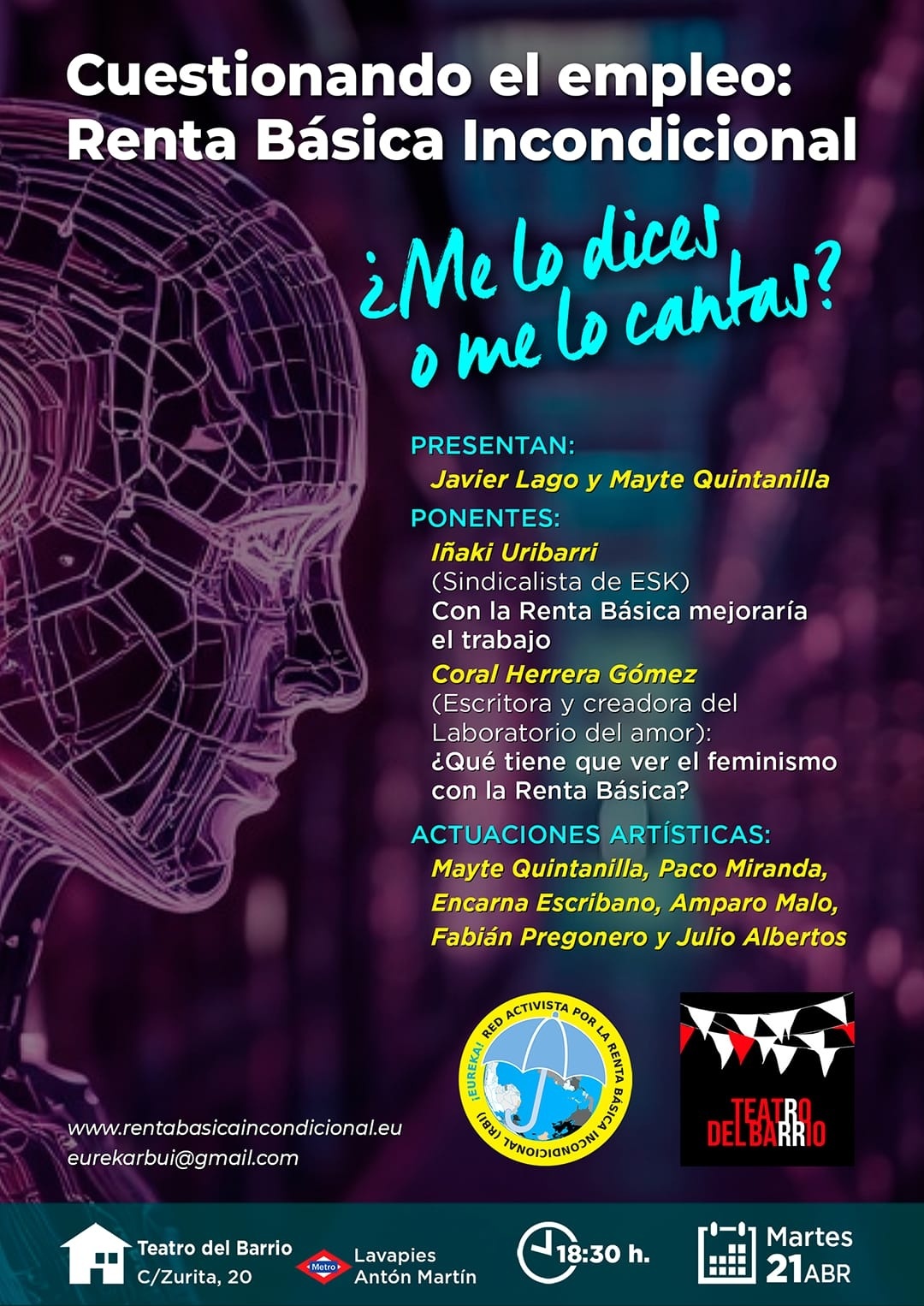 Desde EUREKA, Red Activista por la Renta Básica Universal e Incondicional estamos preparando este acto en el Teatro del Barrio, con mucha ilusión.