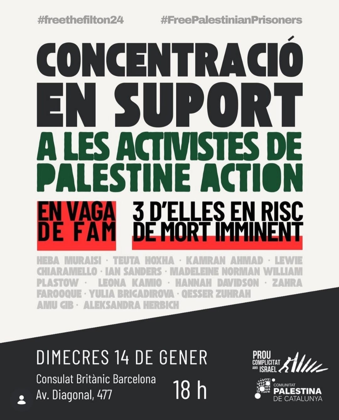 Concentració en suport a les activistes de Palestine Action en vaga de fam en presons del Regne Unit. Tres d’elles estan en risc de mort imminent!
