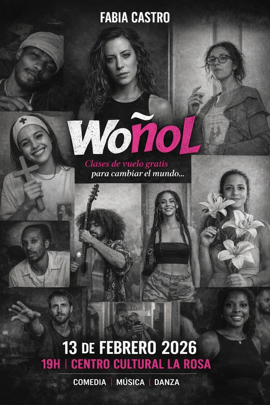 En esta comedia performática la artista Fabia Castro mezcla stand up, música y danza para narrar una fábula familiar sobre la represión de la figura femenina en la sociedad occidental. En esta pieza de 80 minutos Fabia intentará convencer al espectador para construir una nueva comunidad valiéndose de las tradiciones africanas, la música latina y una nueva filosofía fusión. Fabia pide un cambio en toda la sociedad para poder cambiar ella y así vivir sin sentir prisa ni soledad, Lo logrará?
